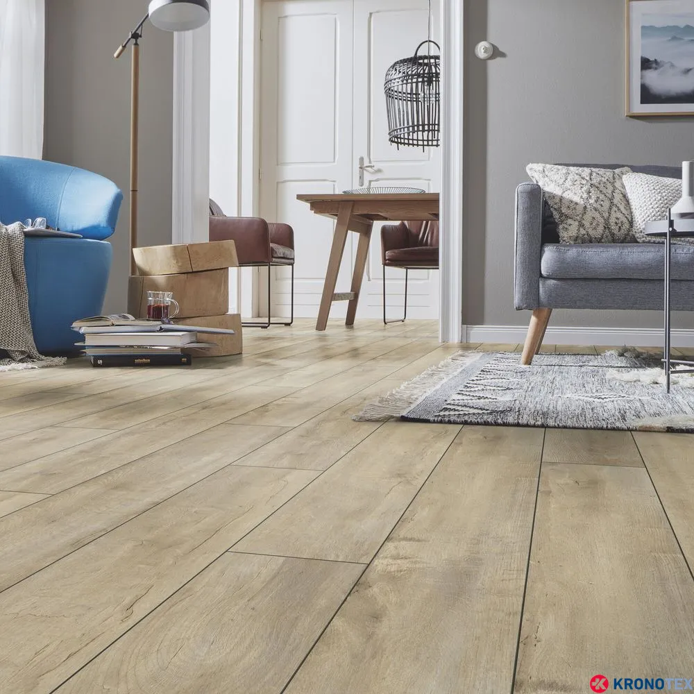Ламинат Kronotex Exquisit Дуб Восточный Бежевый D4982 — это современное и стильное напольное покрытие, которое станет отличным дополнением для любого интерьера. Толщина ламината составляет 8 мм, что обеспечивает его прочность и долговечность. Износостойкость класса 32 делает его идеальным решением для жилых и коммерческих помещений со средним уровнем нагрузки.