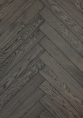Инженерная доска имеет выразительную текстуру с контрастными прожилками, подчеркивающими природный рисунок древесины. Оттенок покрытия глубокий, с легким затемнением, что придает полу благородный и винтажный характер. Матовое покрытие уменьшает степень блеска поверхности и делает тактильные ощущения от соприкосновения с ней приятными.