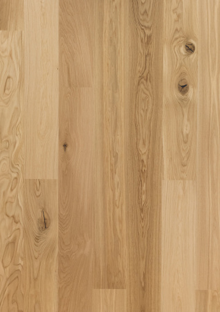 Эта однополосная доска из дуба отлично передает мягкие, светлые оттенки древесины. Благодаря обилию цветовых вариации и наличию сучков, вы получаете по-настоящему неповторимую текстуру.