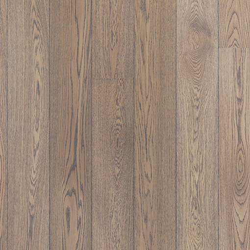 Легко брашированная однополосная доска из отборного дуба под серым маслом. Допускается: разнотон; заболонь; сердцевинные лучи; редкие сросшиеся сучки; групповые булавочные сучки.