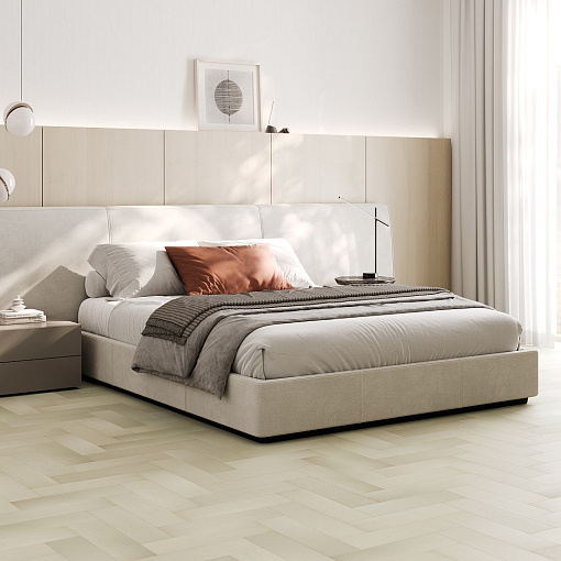 Кварцпаркет Клён Американский Белый из коллекции «Штучный паркет» — это мелкая дворцовая ёлочка в холодном оттенке. Сложно придумать более подходящий вариант пола для скандинавского интерьера, в котором хочется создать атмосферу уюта.