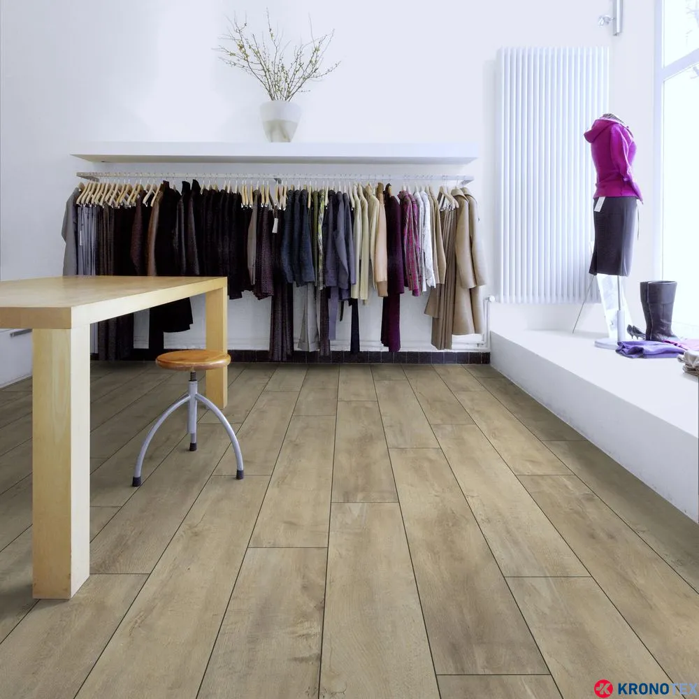 Ламинат Kronotex Exquisit Дуб Восточный Бежевый D4982 — это современное и стильное напольное покрытие, которое станет отличным дополнением для любого интерьера. Толщина ламината составляет 8 мм, что обеспечивает его прочность и долговечность. Износостойкость класса 32 делает его идеальным решением для жилых и коммерческих помещений со средним уровнем нагрузки.