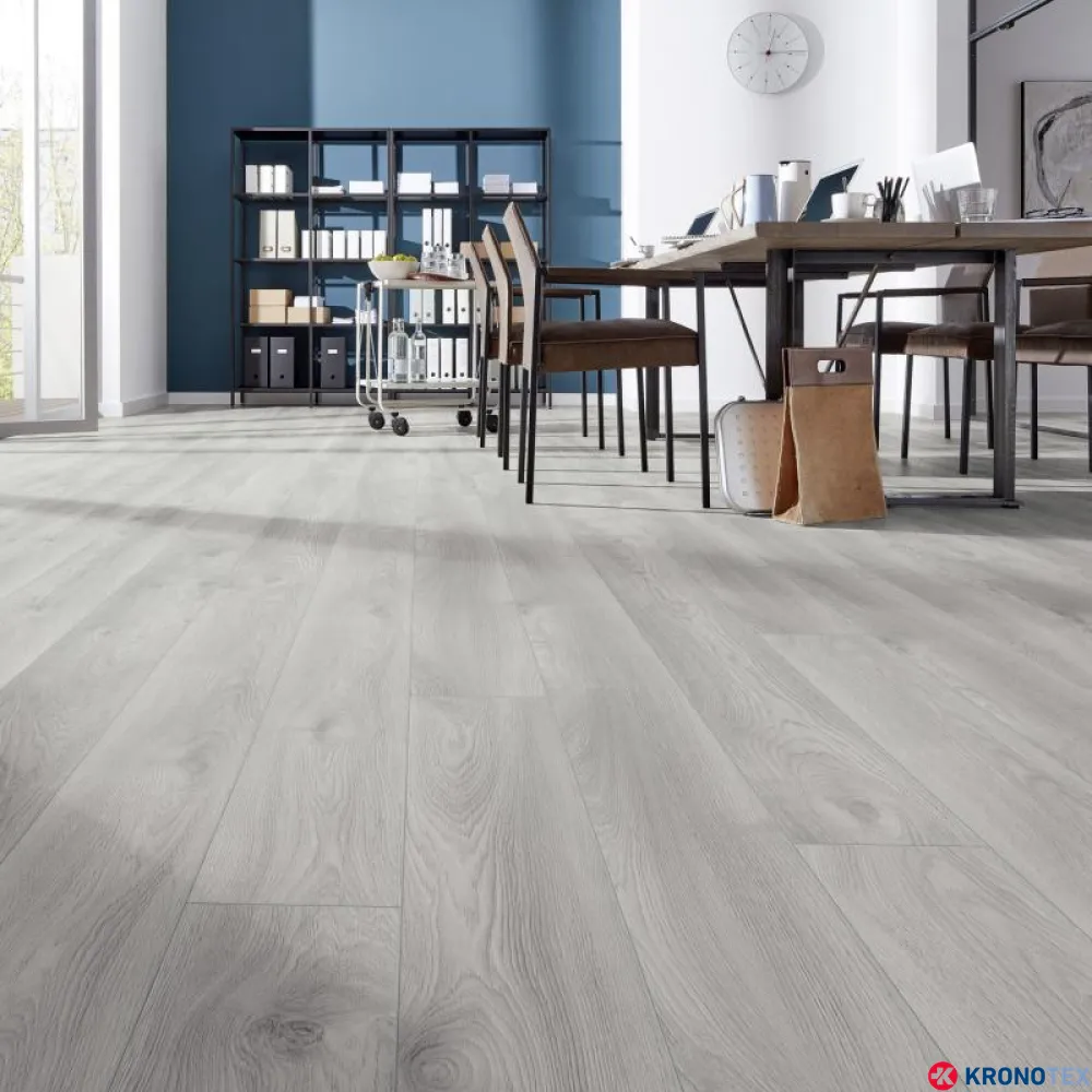 Ламинат Kronotex Mammut Дуб Макро Светло-серый D3670 представляет собой высококачественное покрытие для пола с превосходными характеристиками. Толщина доски составляет 12 миллиметров, что гарантирует высокую прочность и долговечность. Класс износостойкости 33, или АС5, делает ламинат идеальным решением для помещений с высокой проходимостью, таких как гостиные, столовые, прихожие и даже коммерческие объекты.