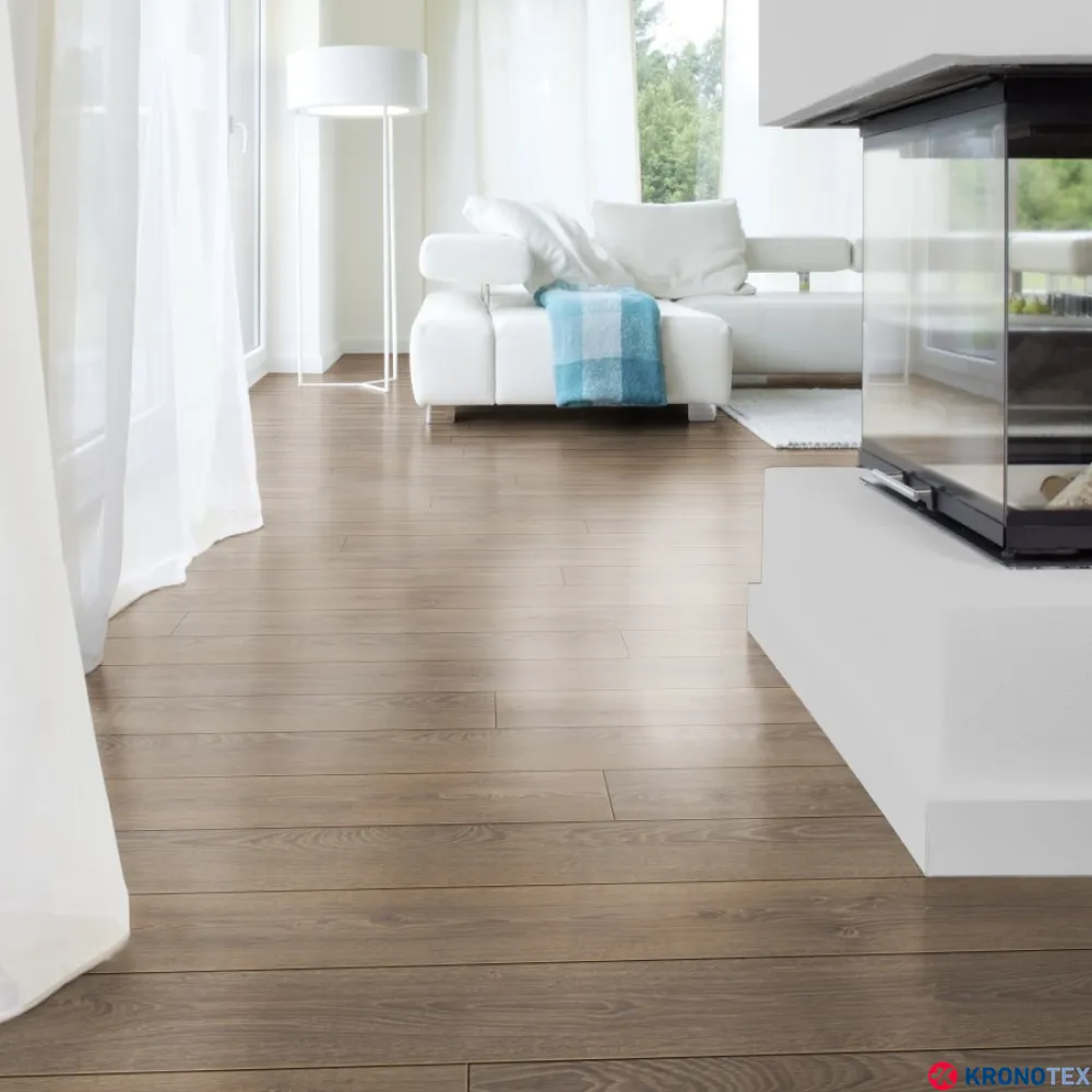 Чрезвычайная устойчивость к повреждениям и загрязнениям обеспечивается благодаря специальной обработке поверхности. Плита высокой плотности обеспечивает стабильность и прочность покрытия, а также его звуко- и теплоизоляцию. Ламинат Kronotex Mammut подходит для установки на системы теплого пола, что делает его еще более комфортным и практичным решением.