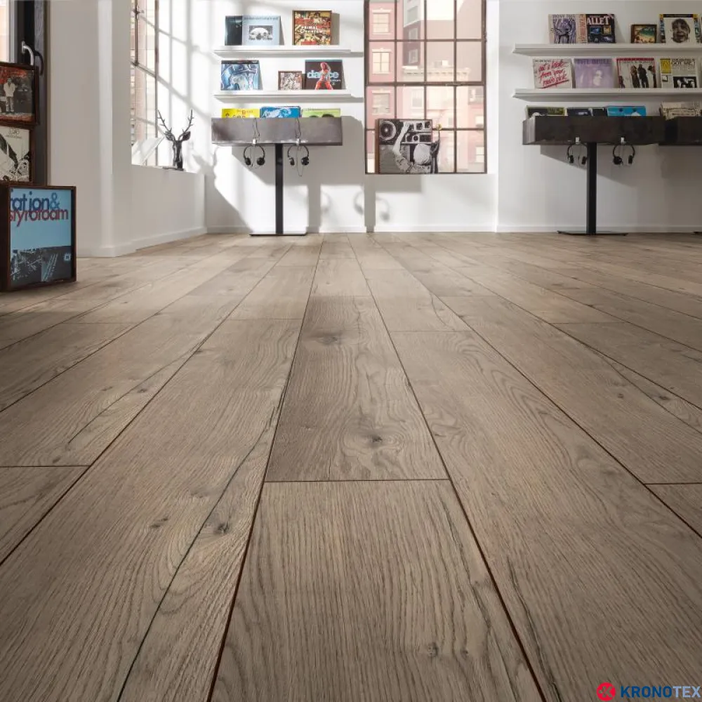 Ламинат Kronotex Robusto Дуб Пустынный Серый D80722 — это высококачественное напольное покрытие, произведенное в Германии.